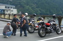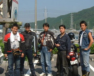 R195沿い長安口ダムにて関西発の面々。 ろくなことしない・・・(笑)。 |
