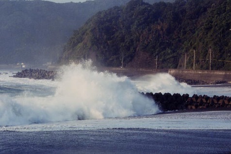 台風の影響で海はこの状態。太平洋の荒波を見て喜んでいた我々だったが、これが大きな落とし穴だった。